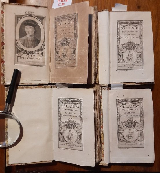 <p>4 vol. 17,5 cm, rilegatura dell'epoca ricoperta da carta policroma, titolo su tassello al dorso, Ex libris ai risguardi dei piatti. Ritratto dell'autore inciso da Lapi al primo volume, Frontespizio inciso da G. Lapi in ogni volume; p. xxiv, 401; 419; 418; 401. Brunitura omogenea nei quattro volumi, (viraggio della carta). Tracce di tarlo per circa 200 carte ai quattro volumi, lontane dal testo.</p>