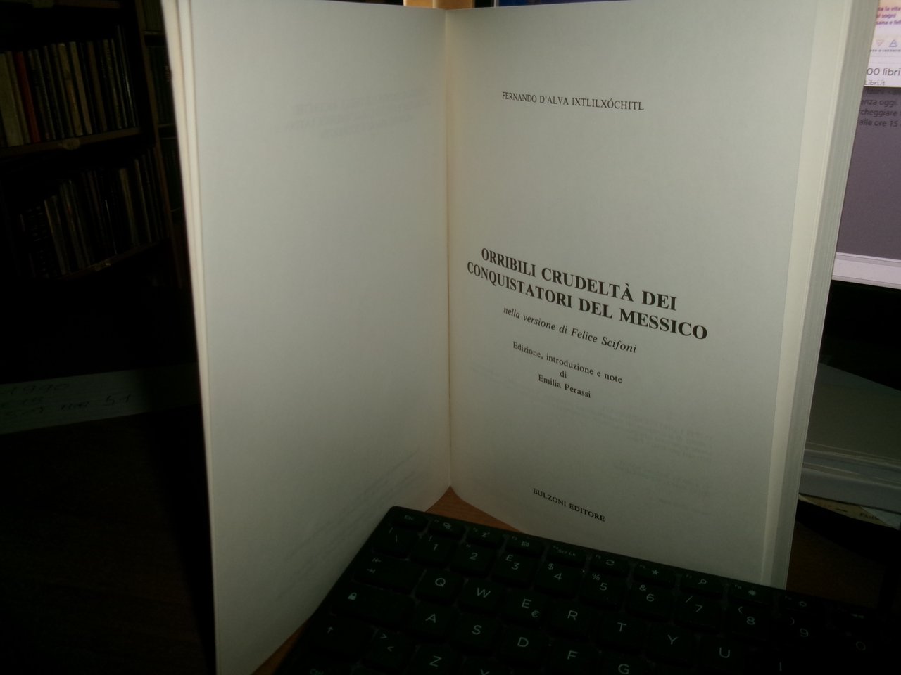 Fernando D' Alva Ixtlilxòchitl. Roma, Bulzoni Editore, 1990. Orribili crudeltà dei conquistatori del Messico nella versione di Felice Scifoni. Edizione in facsimile. Edizione, introduzione e note di Emilia Perassi. In-8°, br. 238 pp. In ottimo stato di conservazione. Neg. esot. mob. 51