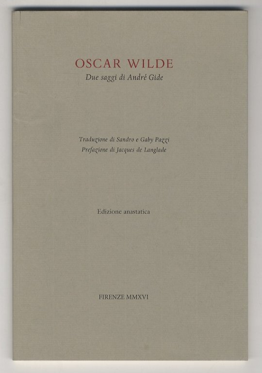 Oscar Wilde. Due saggi di André Gide. Traduzione di Sandro e Gaby Pazzi. Prefazione di Jacques de Langlade. Edizione anastatica.