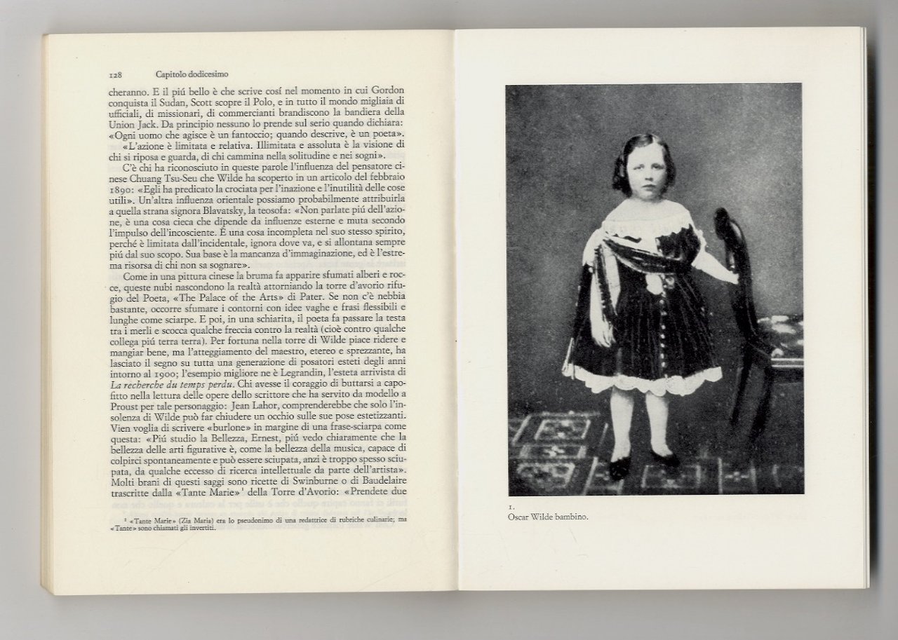 Torino, Einaudi, 1972, in-8, brossura editoriale con sovraccoperta (illustrata con ritratto del giovane Wilde), pp. 296, (10). Con 19 illustrazioni in b.n. fuori testo. "Saggi", 486. Ex libris applicato. Ottime condizioni.