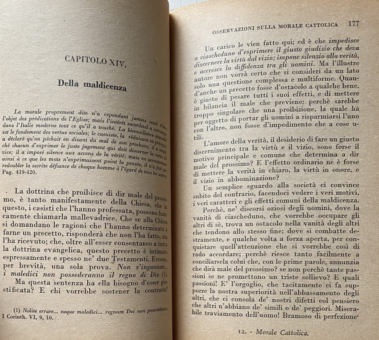 Soggetti: Religione, Chiesa, Teologia, Letteratura italiana, Classici, Ottocento, Saggio filosofico-religiosi, Storia delle repubbliche italiane del Medio Evo, Histoire des républiques italiennes du Moyen Âge, Sismonde de Sismondi, Cattolicesimo, Cristianesimo, Bene civile, Luigi Tosi, Male, Histoire, Italiani, Osservazioni, Prefazione Al lettore, Confutazioni, Corruzione, Costumi morali, Giuseppe De Robertis, Promessi Sposi, Fermo e Lucia, Federigo, Conversione, Scritti, Nicole, Pascal, Louis Bourdaloue, Giansenisti, Grazia, Agire umano, Saint-Cyran, Arnauld, Portorealisti, Misericordia divina, Peccatori, Dissertazioni, Dottrina, Fede, Patriottismo, Universale, Massimiliano Mancini, Carteggio, Lettere, Marino Parenti, Giuseppe De Robertis, Opere inedite rare, Pietro Brambilla, Ruggero Bonghi, Giovanni Sforza, Giuseppe Gallavresi, Fabio Jermini, Penitenza, Romanticismo, Giansenismo, Libri rari Vintage fuori catalogo, Collezionismo, Controriforma, Storia, Verità, Razionalità, Decadenza, Politica, Dannazione, Salvezza, Elemosina, Indulgenze, Odio, Fanatismo, Astinenza, Castità, Umiltà, Verginità, Sessualità, Coscienza, Obiezione, Peccato, Immoralità, Maldicenza, Clero, Giustizia sociale, Filosofia, Concezione cristiana, Religiosità, Sermoni, Jean-Baptiste Massillon, Jacques Bénigne Bossuet, Vangelo, Bibbia, Concilio di Trento, Condotta, Gesù Cristo, Giudizio, Helvetius, Église, Legge divina, Misericordia, Opinioni, Parmenione, Parola, Passioni, Perfezione, Precetti, Principio, Prova, Sacramenti, Spirito, Virtù, Autorità, Bentham, Lingua francese, Locuzioni, Temistocle, Ugo Capeto, Plutarco, Leibnitz, Accademici della Crusca, Epicurea, Eudemonologica, Fénelon, Luigi XI, Montesquieu, Tertulliano, Illuminismo, Rivelazione, Rosmini, Servilità, Vizio, Apologia, Difesa, Accuse, Patristica, Esegesi biblica, Fausto Ghisalberti, Critica manzoniana, Beccaria, Speculazione filosofica, Utilità, Scritture, Latino, Traduzioni, Citazioni, Confessione, Segreto confessionale, Ricompensa, Maldicenza, Lutero, Decreti, Casisti, Corruttela, Religion, Church, Theology, Italian literature, Classics, Nineteenth century, Philosophical-religious essay, History of the Italian republics of the Middle Ages, Catholicism, Christianity, Civil good, Evil, Italians, Observations, Preface to the reader, Rebuttals, Corruption, Moral customs, Betrothed, Conversion, Writings, Jansenists, Grace, Human action, Portorealists, Divine Mercy, Sinners, Dissertations, Doctrine, Faith, Patriotism, Correspondence, Letters, Rare unpublished works, Penance, Romanticism, Jansenism, Rare books out of print, Collectibles, Counter-Reformation, History, Truth, Rationality, Decadence, Politics, Damnation, Salvation, Alms, Indulgences, Hatred, Fanaticism, Abstinence, Chastity, Humility, Virginity, Sexuality, Conscience, Objection, Sin, Immorality, Slander, Clergy, Social justice, Philosophy, Christian conception, Religiosity, Sermons, Gospel, Bible, Council, Conduct, Jesus Christ, Judgment, Divine law, Mercy, Opinions, Parmenion, Word, Passions, Perfection, Precepts, Principle, Proof, Sacraments, Spirit, Virtue, Authority, French language, Locutions, Themistocles, Hugh Capet, Plutarch, Academics, Epicurean, Eudemonological, Louis biblical, Criticism, Philosophical speculation, Utility, Scriptures, Latin, Translations, Quotations, Confessional secret, Reward, Slander, Luther, Decrees