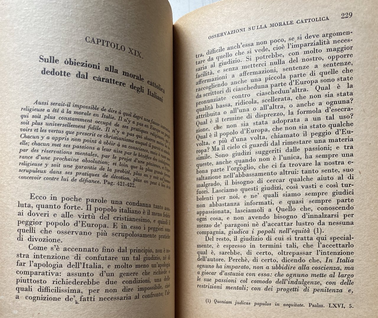 Sulle obiezioni alla morale cattolica dedotte dal carattere degli Italiani