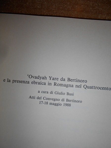 Giulio Busi a cura. Torino, Silvio Zamorani, 1989. 'Ovadyah Yare da Bertinoro e la presenza ebraica in Romagna nel Quattrocento. In-8°, cart. edit. xvi, 111 pp. con 4 tavole f.t. In ottimo stato di conservazione. Uff. TV. carc.