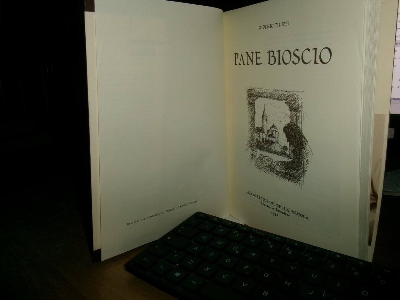 Giorgio Filippi. Bologna, Lizzano in Belvedere, 1991. PANE BIOSCIO. In-8°, cart. edit. con risvolti. 271 pp. con una illustrazione n.t. Come nuovo. Neg. Bol. mob. 20