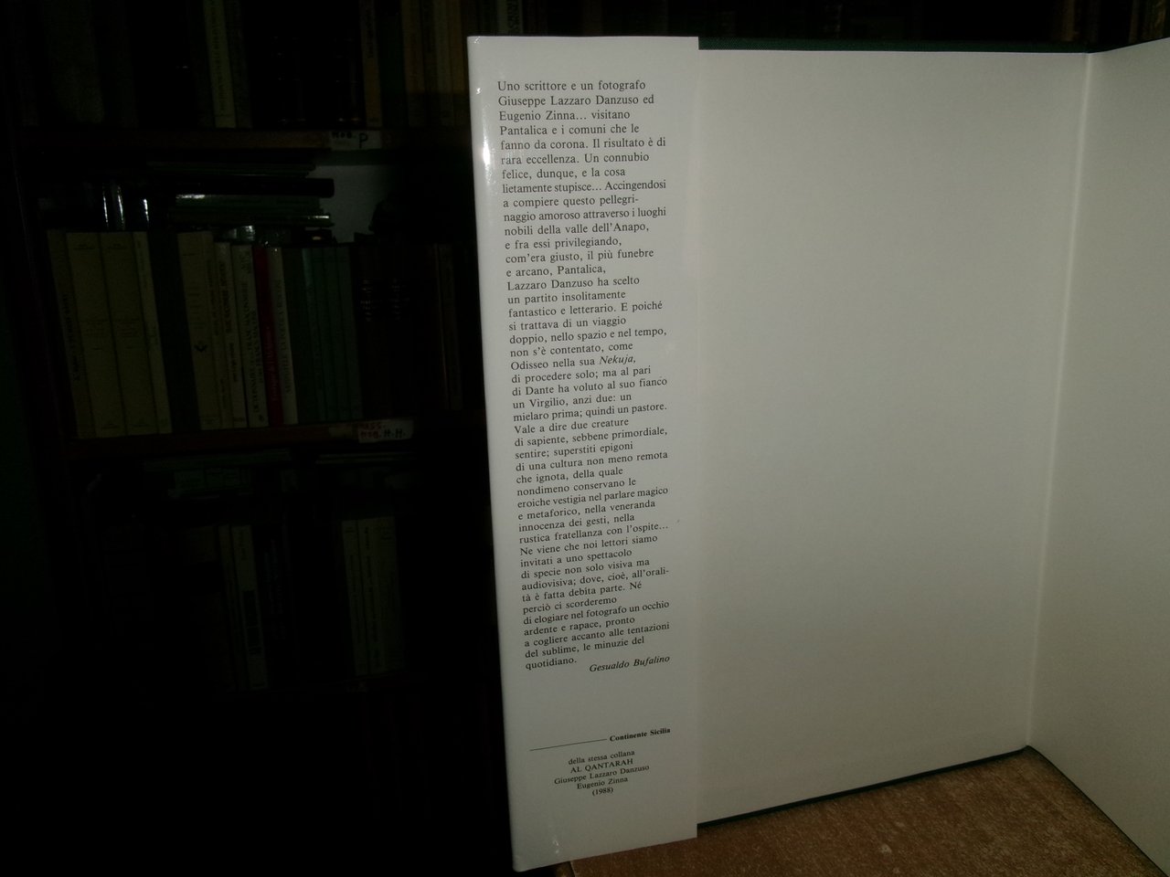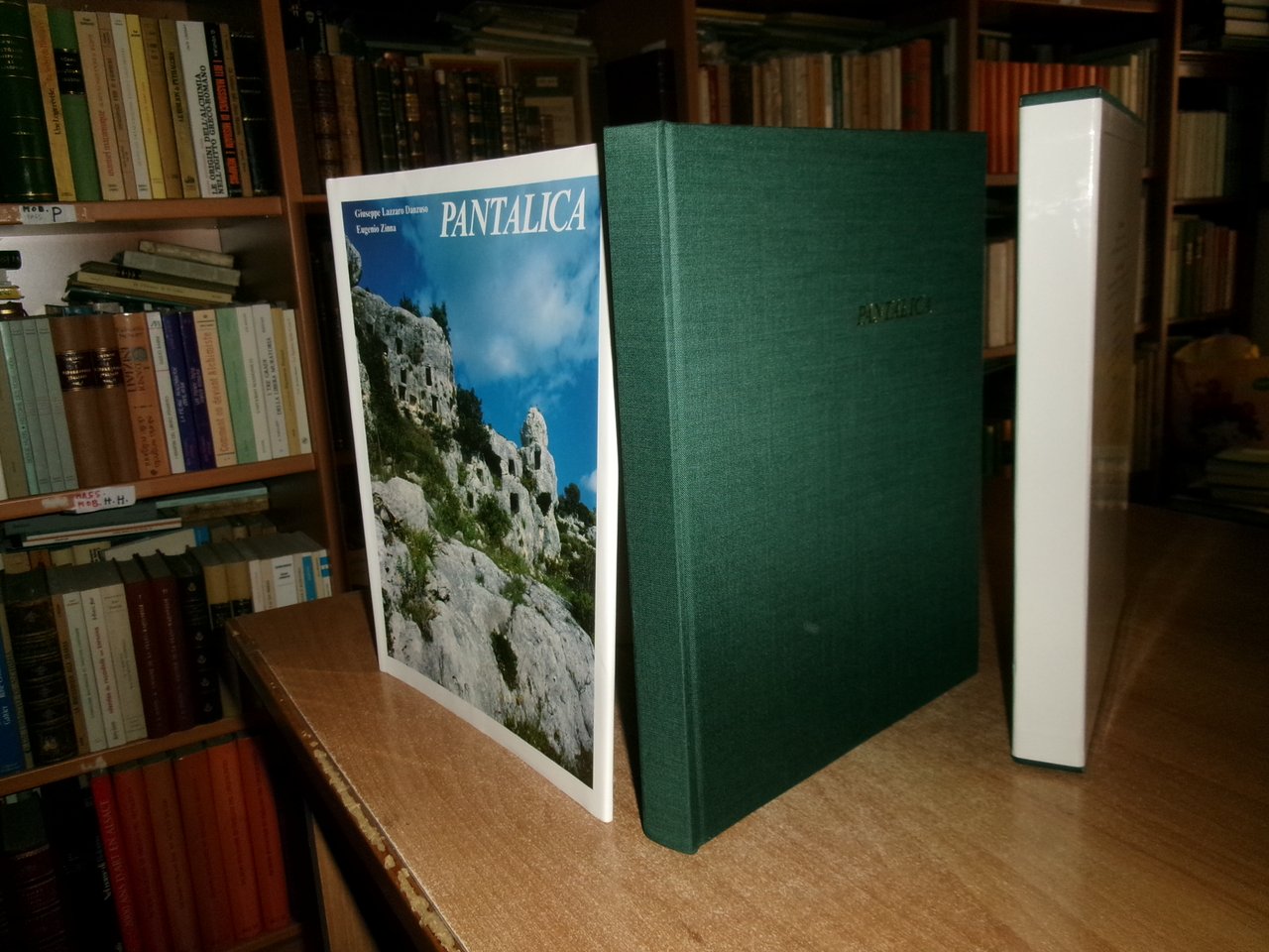 Giuseppe Lazzaro Danzuso / Eugenio Zinna. Milano, Officine Grafiche Elli e Pagani per Domenico Sanfilippo Editore, 1989. PANTALICA. In-4°, tela edit. verde con titolo in oro, sovracopertina ill. a col. 202 pp. con numerose illustrazioni fotografiche a colori anche a piena e doppia pagina. Libro come nuovo con astuccio in cartonato rigido con live ingiallitura nel margine del verso. Neg. mob. viaggi