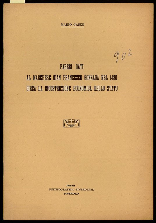 Pareri dati al Marchese Gian Francesco Gonzaga nel 1430 circa la ricostruzione economica dello Stato