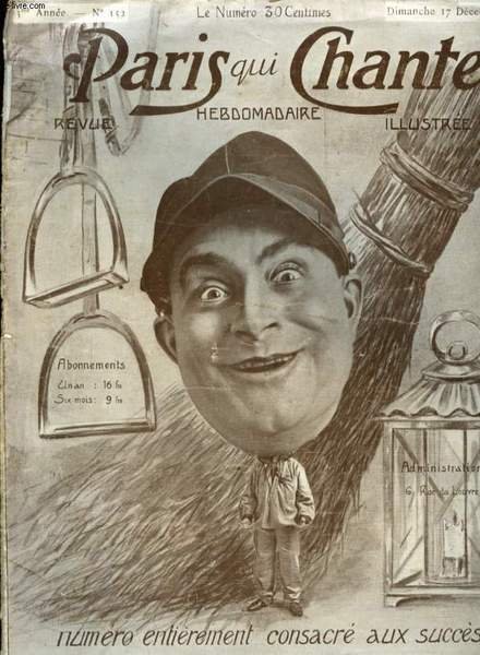 17 déc 1905. In-4. Broché. Etat d'usage, Livré sans Couverture, Dos satisfaisant, Intérieur frais. 15 pages. Nombreuses illustrations et gravures en noir et blanc, dans le texte et hors texte. Nombreuses partitions pour chants + paroles. . . . Classification Dewey : 780-Musique