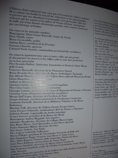 Textes de Gianni Guadalupi e Marzio Dall' Acqua. Bologna, (Castenaso), Franco Maria Ricci, 2007. PARME. Textes Guadalupi, Dall' Acqua. Notices de Francesca Grignaffini e Maria Cristina Chiusa. In-4°, cartonato ricoperto di seta nera con titoli in oro, una illustrazione a colori applicata sul piano anteriore. 250 pp. con numerose illustrazione a colori la maggior parte a piena e doppia pagina. Testo in francese. Esemplare come nuovo. Neg. mob. nero. Carcer.