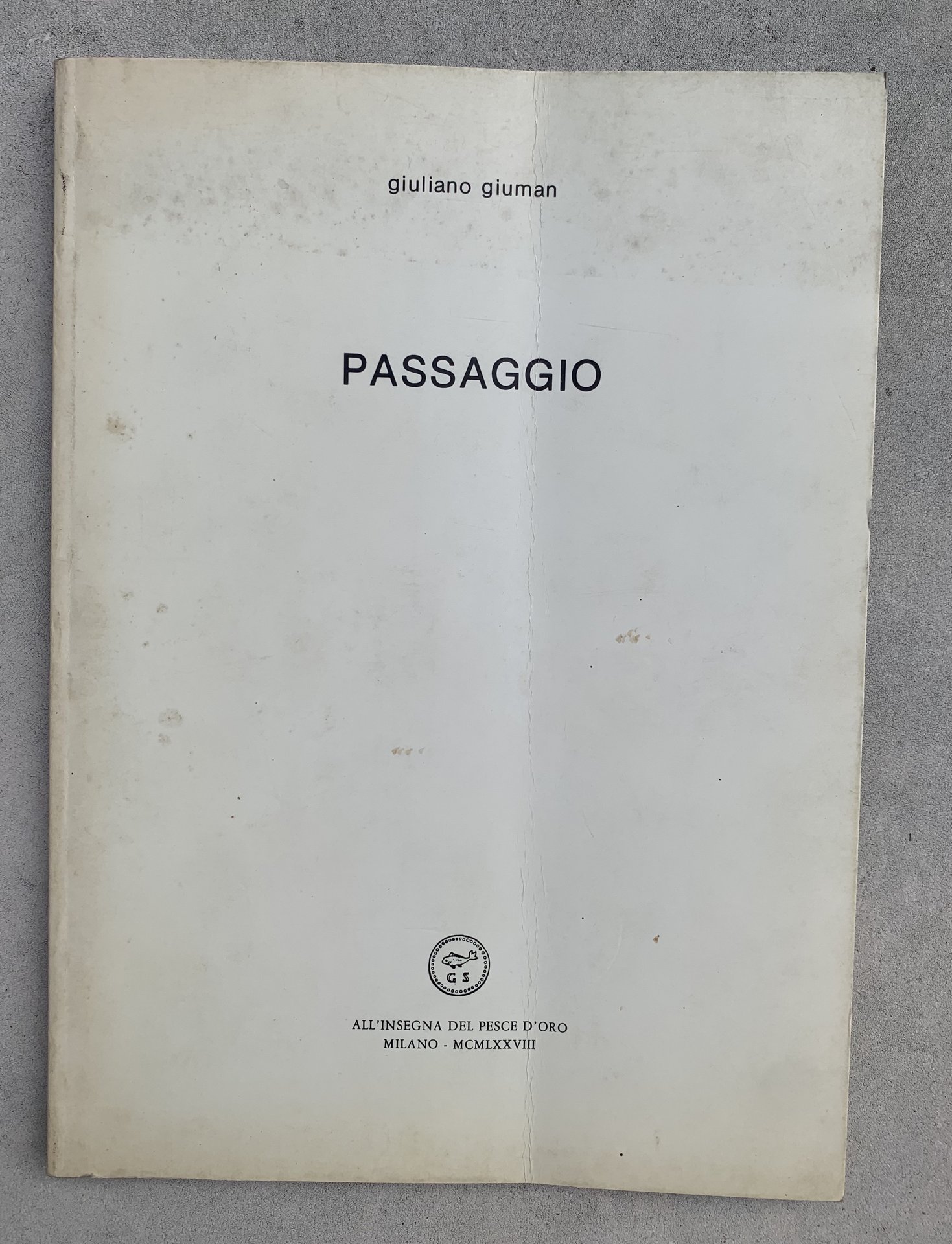 I ed.: MCMLXXVIII (ma finito di stampare nel gennaio 1979 con tiratura limitata a milleduecento copie numerate da 1 a 1200: copia senza numero). VIII/ (84)/ brossura in cartoncino patinato bianco con titoli in nero. Illustrazioni in b/n. Stato buono (usura della copertina con, in particolare una piega longitudinale al primo piatto - copertina con bruniture e piccole fioiture - pagine leggermente brunite).