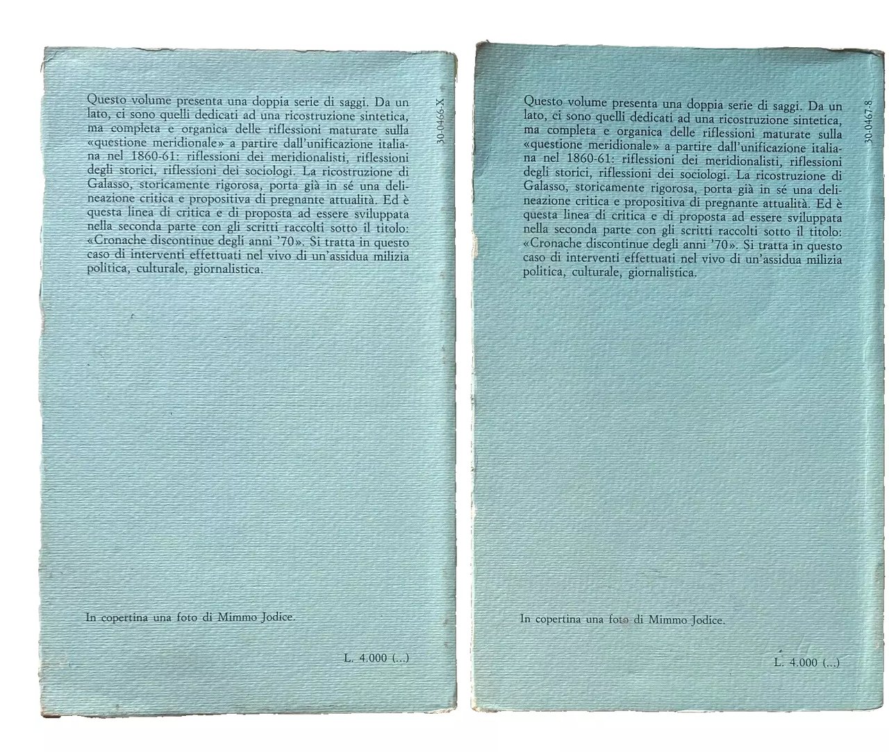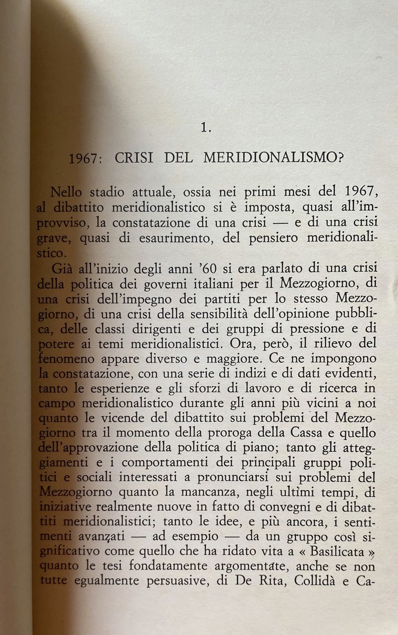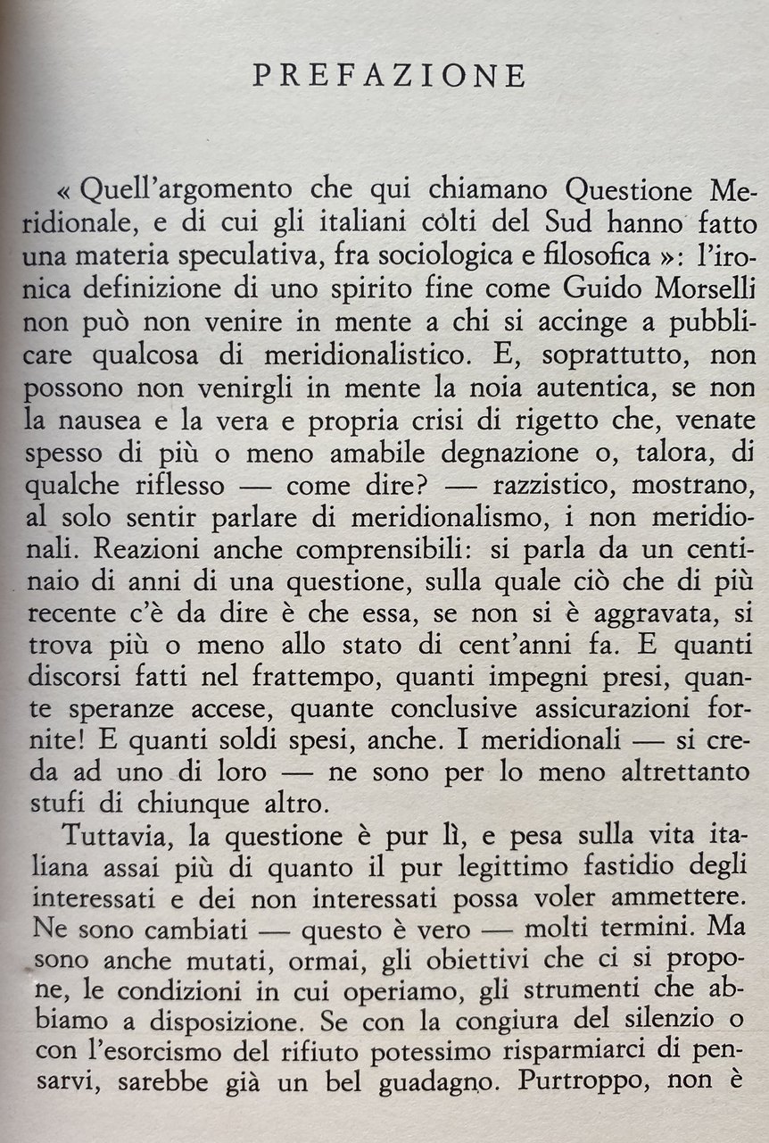 Soggetti: Storia sociale contemporanea Storiografia mezzogiorno Sud Italia meridionale Meridionalismo Studi storici Analisi Critica Unità Unificazione Fascismo Mito Buongoverno Giustino Fortunato Positivismo Socialismo Liberismo Progresso Sviluppo economico Disparità Industria Città Economia Politica Legislazione Grande guerra Benedetto Croce Sturzo Autonomia regionale Democrazia rurale Agricoltura Arretratezza Liberalismo Mentalità Democrazia Arturo Labriola Guido Dorso Realismo Utopia Antonio Gramsci Egemonia culturale Rivoluzione élite Classi dominanti Processo Risorgimento Ricostruzione Miracolo Economico Boom Bilancio Sinistra Comunismo Partito Comunista PCI Potere Polemiche Svimez Pasquale Saraceno Questione meridionale Gioacchino Volpe Revisionismo Civiltà contadina Mitologia Miti Razionalismo Nord Genesi Genealogia Destra Neo-liberismo Stato unitario Giolitti Populismo Nitti Spesa pubblica Finanziaria Socialisti Sociologia storica Rosario Romeo Emigrazione Immigrazione tesi storiche Teorie Interpretazione Saggi libri rari fuori catalogo Bibliografia Riferimento Consultazione Scritti politici Antologie raccolte Collezionismo Borboni Piemonte Rapina Cavour Banca Francesco de Sanctis Gaetano Salvemini Rosmini Mazzini Marxismo Cattaneo Attualità Operai Sindacati Alfa-Sud Calabria Castellamare di Stabia Fabbriche Stabilimenti Disoccupazione Imprese Legge 183 Elezioni Corruzione Clientelismo Gioia Tauro Riconversione Smantellamento Dismissione Bagnoli Acciaieria Torino Trevico Fiat Mafia Agraria Agricola Blocco Borghesia Brigantaggio Ceriani Sebregondi Ciccotti Civiltà contadina Classe dirigente Condizioni Contemporanea Einaudi Fascismo Franchetti Giudizio Gramsciana Guerre mondiali Intellettuali Italia Legislazione Letteratura liberale Lotta Manlio Rossi Doria Marxismo Masse Meccanicismo Morandi Nazionale Populistiche Proletariato Risorgimento Rurale Settentrionale Sistema Amministrazione Battipaglia Campania Cassa Centro Ciccio Franco Cifre Corporativismo Crisi Intervento Donat-Cattin Grottaminarda Impianti Incentivi Industrializzazione Interessi Investimenti Jacquerie L'Espresso Lavoro Locali Ministro Moti Reggio Politiche Potere Produttiva Reddito Sicilia Siderurgia Ugo La Malfa Gabinetto Vieusseux Borbone Savoia Vittorio Emanuele II Garibaldi Briganti Zanardelli Tommaso Fiore Famiglia Molfetta Declino Prezzi Inflazione Studi economici economico-sociali Contemporary social history Historiography Southern Italy Southernism Historical studies Critical analysis Unity Unification Fascism Myth Good governance Socialism Liberalism Progress Economic development Disparity Industry City Economy Politics Legislation Great war Regional autonomy Rural democracy Agriculture Backwardness Liberalism Mentality Democracy Realism Cultural hegemony Revolution Ruling classes Process Reconstruction Economic miracle Budget Left Communism Communist Party Power Polemics Southern question Revisionism Peasant civilization Mythology Myths Rationalism North Genesis Genealogy Right Neo-liberalism Unitary state Populism Public spending Finance Socialists Historical sociology Emigration Immigration Historical theses Theories Interpretation Essays Rare books out of print Bibliography Reference Consultation Political writings Collected anthologies Collectibles Bourbons Piedmont Bank robbery Current affairs Workers Unions Factories Establishments Unemployment Companies Law Elections Corruption Clientelism Reconversion Dismantling Dismissal Steelworks Turin Agrarian Agriculture Block Bourgeoisie Brigandage Peasant Civilization Ruling Class Conditions Contemporary Fascism Judgement World Wars Intellectuals Italy Legislation Liberal Literature Struggle Marxism Masses Mechanism National Populist Proletariat Risorgimento Rural Northern System Administration Center Figures Corporatism Crisis Intervention Plants Incentives Industrialization Interests Investments Work Local Minister Uprisings Policies Power Productive Income Sicily Steel Industry Cabinet Savoy Brigands Family Decline Prices Inflation Economic social studies