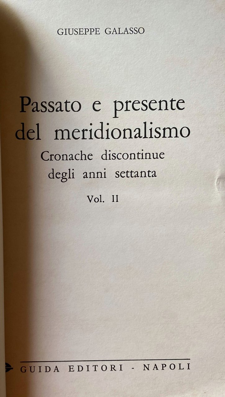 Titolo: Passato e presente del meridionalismo. Genesi e sviluppi; Cronache discontinue degli Anni Settanta