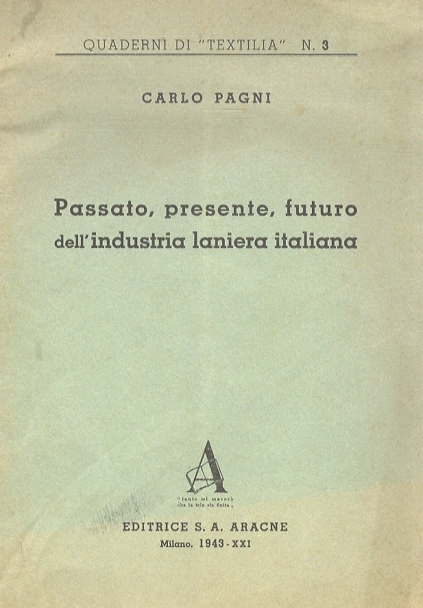 Milano, Editrice S.A. Arcane, 1943, in-8, br. edit., pp. 29, [3]. Quaderni di "Textilia", n. 3.