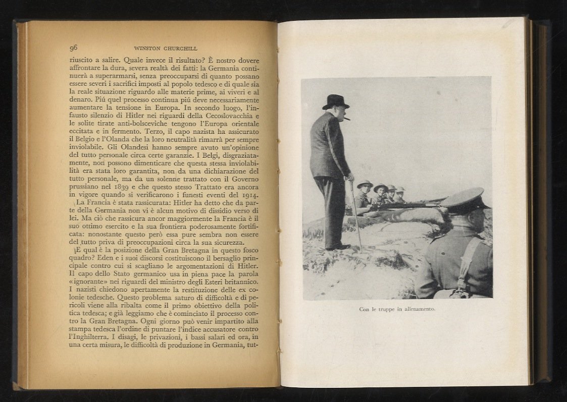 Milano, Mondadori, 1947, in-8, mezza tela editoriale, fregi e titolo in oro al dorso, pp. 364. Prima edizione italiana. Ritratto di Churchill in antiporta e riproduzioni fotografiche, come da frontespizio.