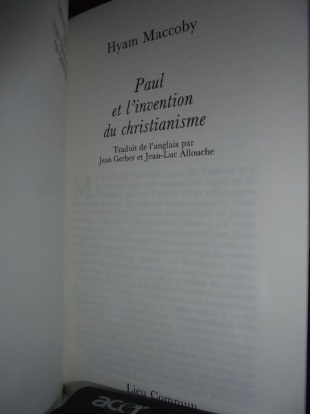 Hyam, Maccoby. France, Lieu Commun, 1987. Paul et l' invention du Christianisme. Traduit de l' anglais par Jean Gerber et Jean-Luc Allouche. In-8° piccolo, cartoncino edit. 313, (1) pp. Neg. mob. nero 10
