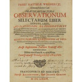Pauli Matthiae Wehneri Jc. Practicarum juris observationum selectarum liber singularis ad materiam de verborum et rerum significatione. Accessit supplementum practicum rerum & dictionum memorabilium. Editio novissima & accuratissima. UNITO A: Supplementum practicum in observationes Vehneri additum Studio & Opera Philippi Ludovici Authaei. Francofordiae Impensis Rulandiorum typis Joan.Gorlini, 1673