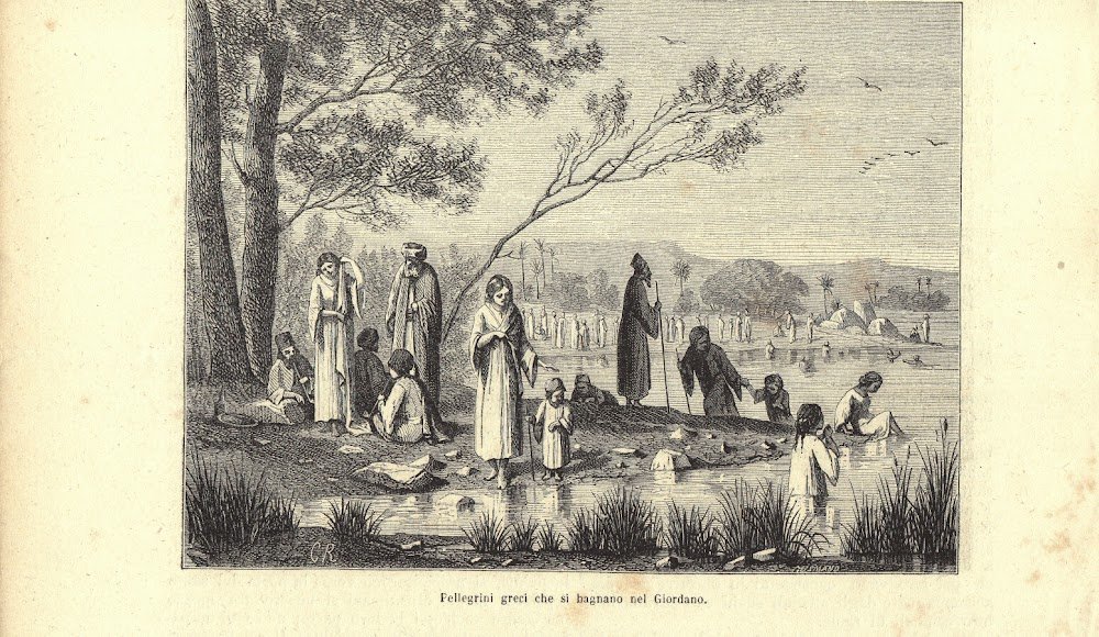 Pellegrini greci che si bagnano nel Giordano. Stampa 1863.