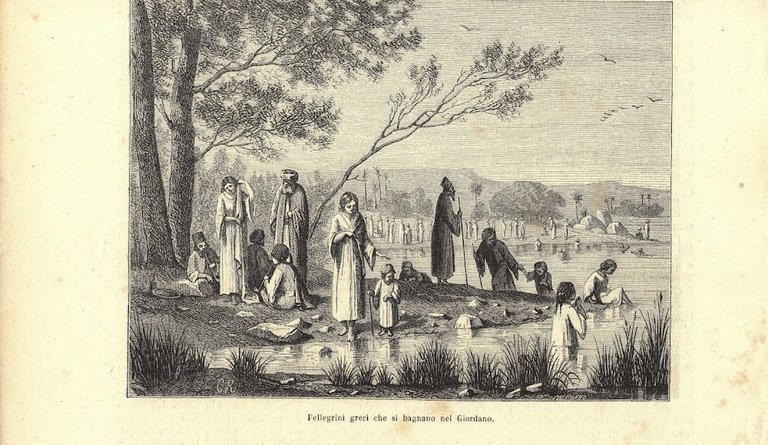 Pellegrini greci che si bagnano nel Giordano. Stampa 1863. | Libri antichi e moderni | ,
