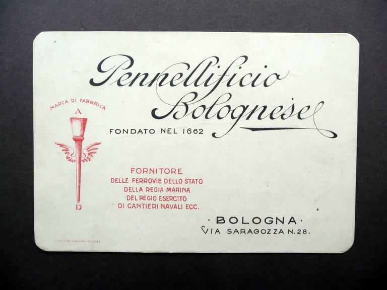 Pennellificio Bolognese Via Saragozza 28 Bologna Cartoncino Pubblicit‡ Anni '30
