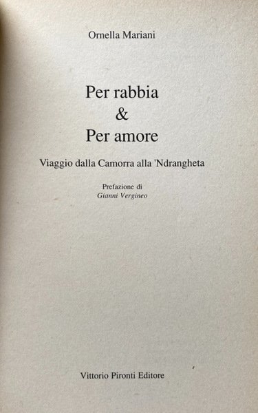 PER RABBIA & PER AMORE. VIAGGIO DALLA CAMORRA ALLA 'NDRANGHETA