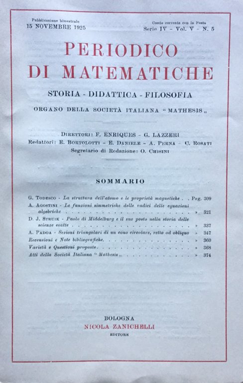 Periodico di matematiche. Storia - Didattica - Filosofia Novembre 1925