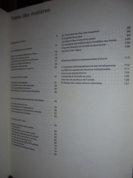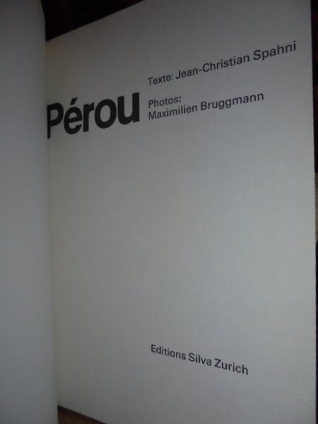 Spahni, Christian-Jean. EDITIONS SILVA, 1970. TABLE DES MATÈRIES: PRÉSENTATION DU PÉRU. - LES CIVILISATIONS PRÉ-INCAIQUES. - L' EMPIRE DES FILS DU SOLEIL. - DE LA CONQUETE À L' AVÈNEMENT DE LA RÉPUBLIQUE. - LE PÉROU AU XX SIÈCLE. - IN-4°, TELA E TITOLO IN ORO SUL PIANO E NEL DORSO, CON SOVRACOPERTINA ILLUSTRATA A COLORI, CON UN PICCOLO RESTAURO LATERALE. 128 PP. CON 131 ILLUSTRAZIONI FOTOGRAFICHE TUTTE A COLORI APPLICATE UNA PER UNA VICINO AL TESTO DESCRITTIVO. PHOTOS: MAXIMILEN BRUGGMANN. RARO E PREGEVOLE. BEN CONSERVATO.