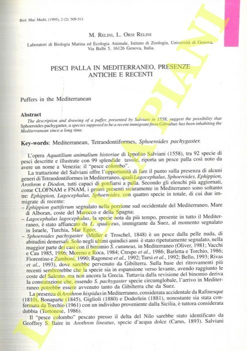 Pesci palla in Mediterraneo, presenze antiche e recenti. | Libri antichi e moderni | Relini M. - Orsi Relini L.