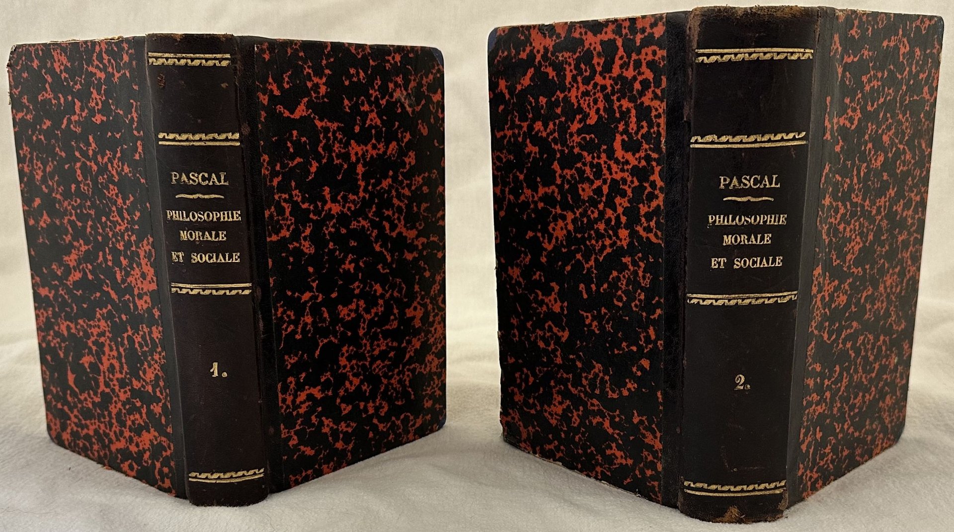 Edizione del 1894 di questo trattato di filosofia morale e sociale scritto dal Padre missionario apostolico Georges de Pascal (1840-1917). All'interno: antropologia sociale, nomologia, diritto sociale, uomo e Dio, uomo e la sua personalità, L'uomo e i suoi simili, l'uomo e il mondo esterno. L'opera è in due volumi ed è completa. In ottime condizioni. Copertina in mezza pelle con titlo e decorazioni in oro al dorso in ottime condizioni con lievi usure ai margini e dorso. Legatura in buone condizioni. Pagine in buone condizioni con fioriture. Il primo tomo è di dimensione più piccola rispetto al secondo. In 8. cm 21x13,5 cm. Pp. 349+(3), 531+(1). Edition of 1894 of this treaty of moral and social phylosohpy written by the father apostolic missionary Georges de Pascal (1840-1917). The work is in two volumes and it is complete In very good conditions. Half leather coeval cover with gilted title and decorations in the spine in very good general conditions light worn in the extremities. Binding in good conditions. Inside pages are in good conditions with foxing.The first tome is more little than the second one. In 8. cm 21x13,5 cm. Pp. 349+(3), 531+(1).