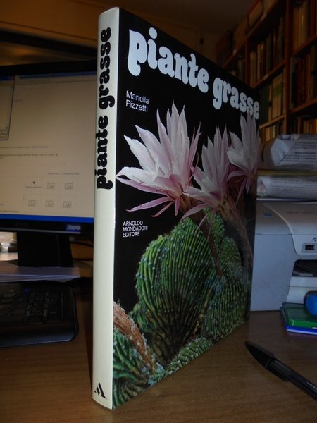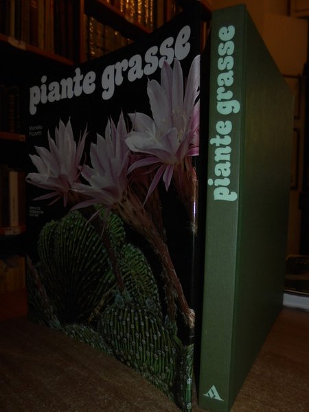 Mariella, Pizzetti. Milano, Arnoldo Mondadori, 1980. Piante Grasse. In-8° grande, tela verde edit. con sovracopertina con difetto descritto. 175 pp. con numerose illustrazioni a colori nel testo. Purtroppo il retro della sovracopertina presenta un taglio verticale da lato a lato con scotch all' interno ma volume in stato di nuovo. Neg. esot. mob. 70