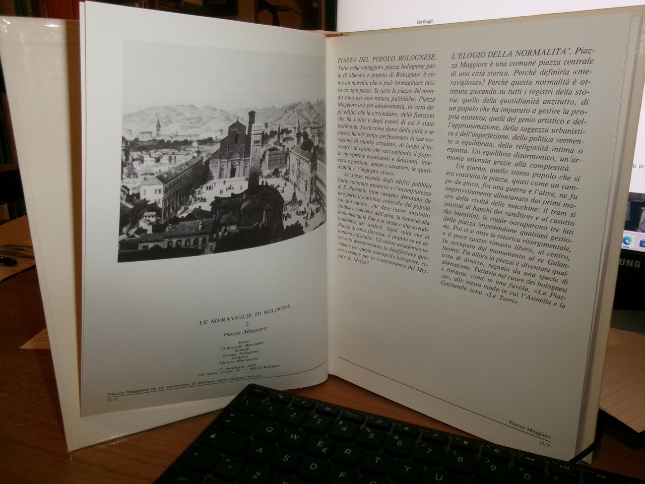 Testo di Giancarlo Bernabei. Bologna, Santarini, 1992. PIAZZA MAGGIORE. Le Meraviglie di Bologna. In-8°, cartonato edit. illustrato. 160 pp. con numerose immagini/illustrazioni in banco e nero n.t. Come nuovo. Neg. mob. bianco comput.
