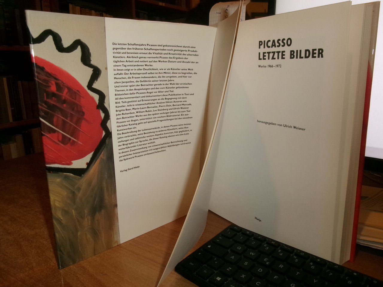 Letzte Bilder. Berlin, Hatje, 1994. PICASSO. Werke 1966-1972. Herausgegben von Ulrich Weisner. In-4°, tela edit. rossa con titoli in nero, sovracopertina illustrata a colori. 323, (2) pp. con numerose illustrazioni a colori e in bianco e nero delle opere del grande Artista. Ottimo lo stato di conservazione. Uff. stanzetta mob. sinistra I - 5 carc.