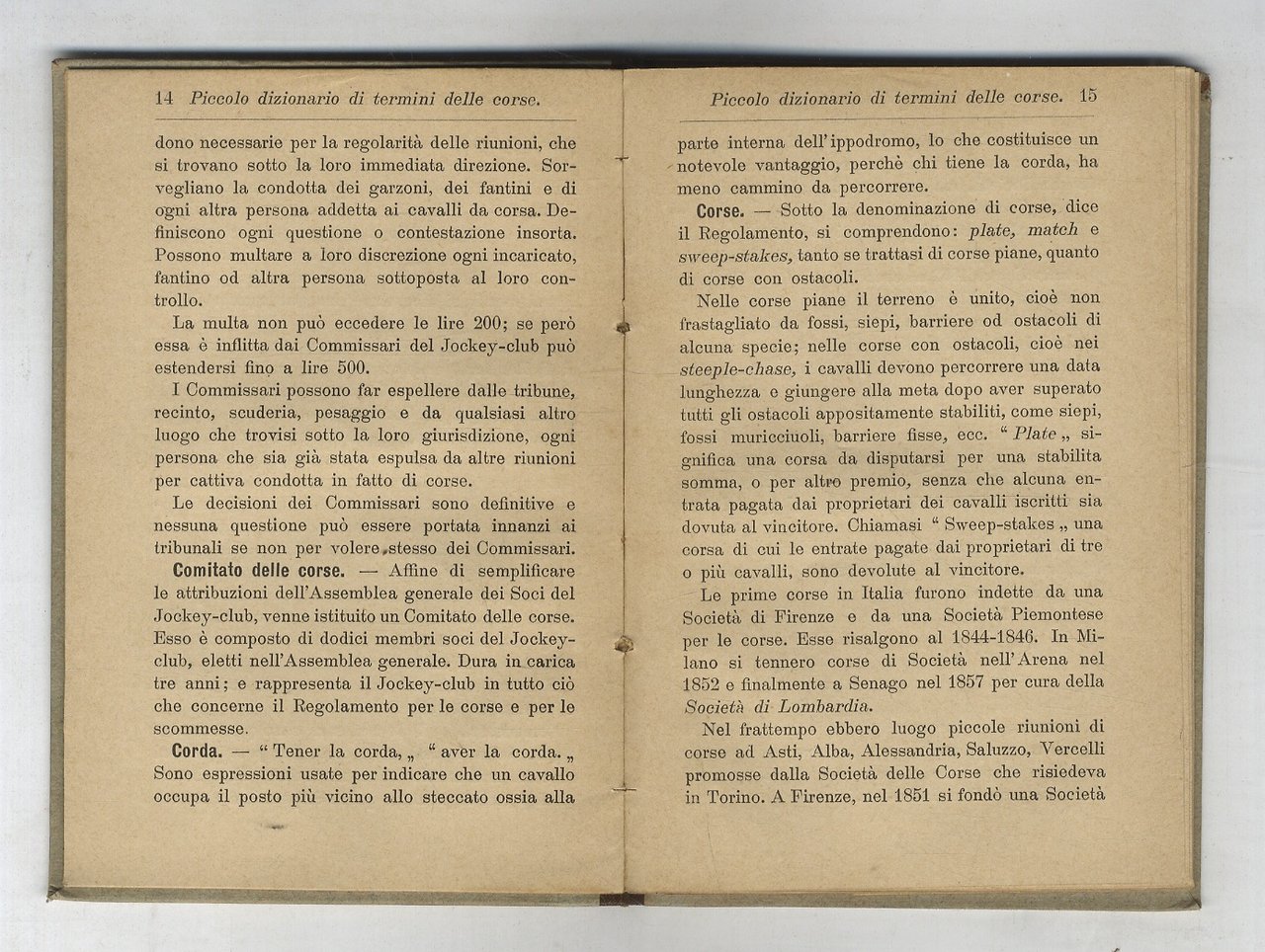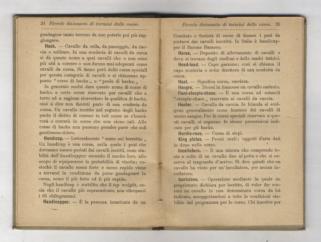 Piccolo dizionario di termini delle corse [di cavalli].