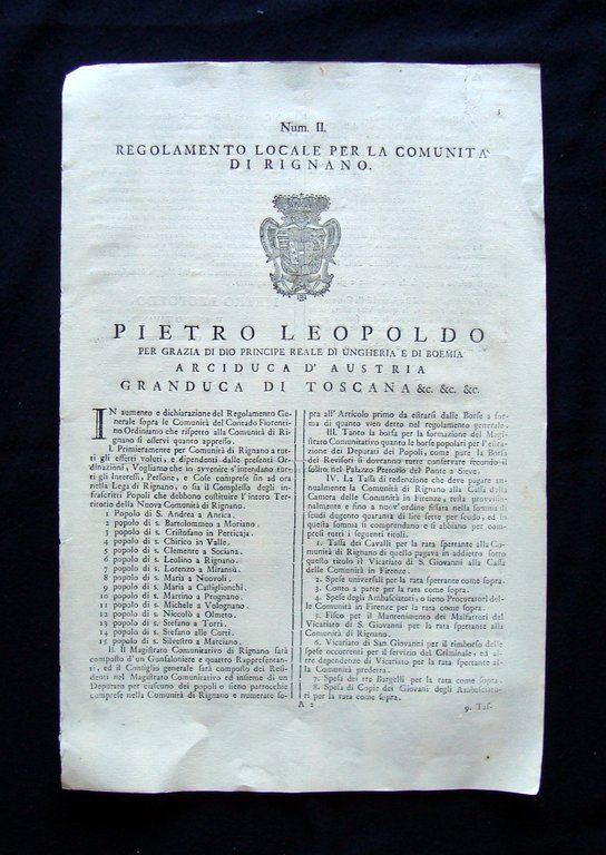 Pietro Leopoldo Num II Regolamento per la Comunit‡ di Rignano 1774