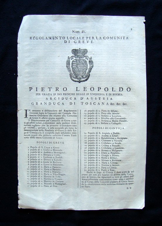 Pietro Leopoldo Num IV Regolamento per la Comunit‡ di Greve 1774