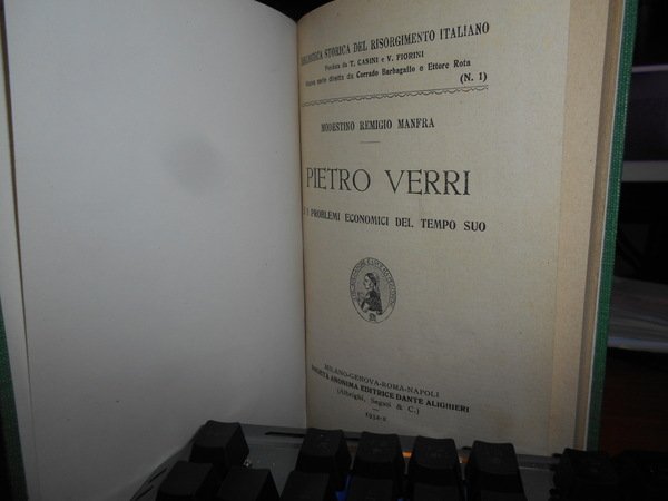 MODESTINO REMIGIO MANFRA. Napoli, Società Anonima Editrice Dante Alighieri, 1932. PIETRO VERRI e i problemi economici del suo tempo. In-16°, tela verde con titolo in oro entro tassello al dorso. xii, 260 pp. In ottimo stato di conservazione. Uff. B - III - 3