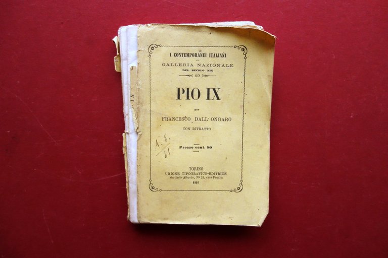 Unione Tipografico Editrice, Torino 1861, cm 14x9,5, pp. 119 con un ritratto di Papa Pio IX inciso in b/n all'antiporta, brossura ed.