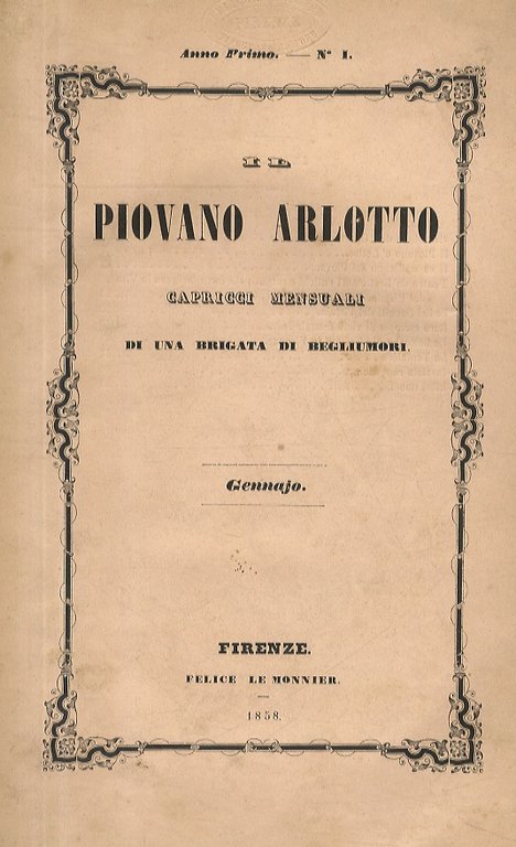 PIOVANO (IL) Arlotto. Capricci mensuali di una brigata di begliumori. Anno primo [- anno terzo].