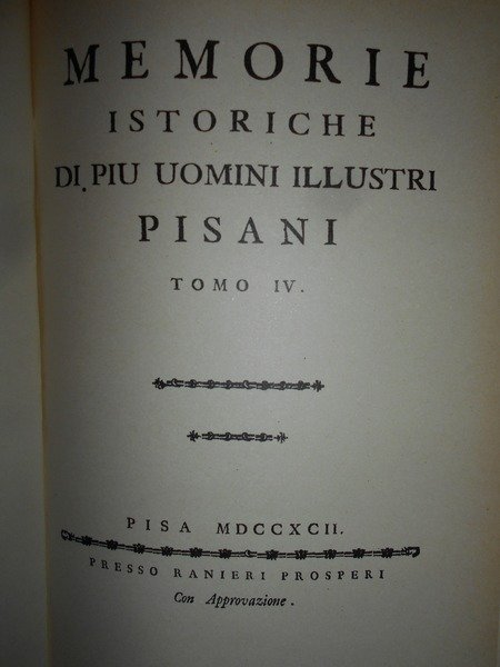 (Pisa) Memorie istoriche di piu Uomini illustri Pisani