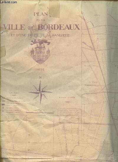PLAN DE LA VILLE DE BORDEAUX ET D'UNE PARTIE DE SA BANLIEUE. DIMENSION : 116 x 76 cm environ.