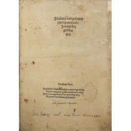 - Frontespizio leggermente consunto e con antica firma cassata e annotazione alla base, rari forellini di vecchio tarlo estinto che mai interessa il testo, sporadici aloni su poche carte, piccola mancanza all\'angolo basso della carta m1, macchia al centro della carta &6 &7 e macchioline alla carta H8, altre macchioline su circa 7-8 carte a metà volume, chiare e piacevoli annotazioni coeve su 13 carte, mancanza di rivestimento cartaceo al piatto anteriore e qualche mancanza di pergamena al dorso