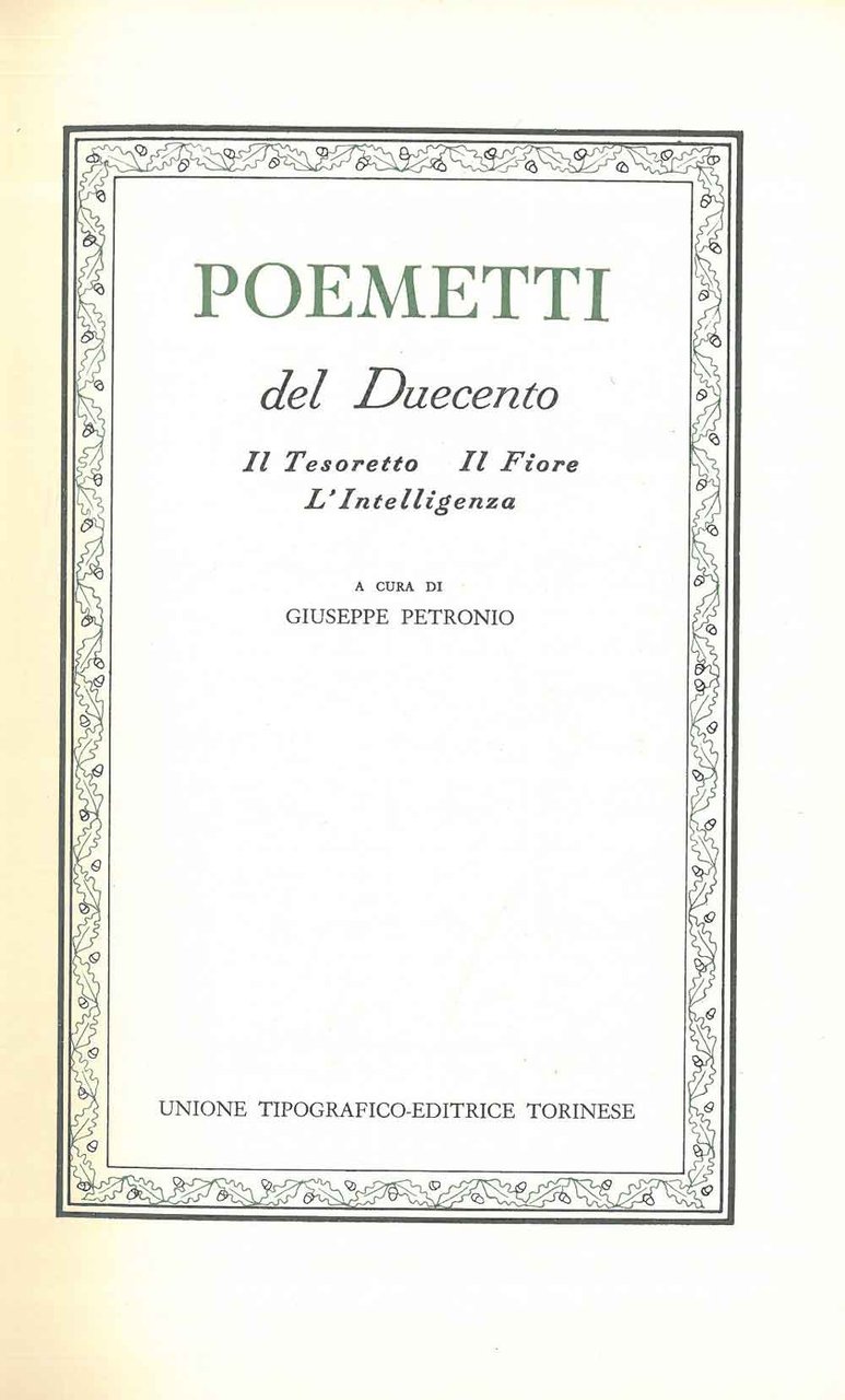 Poemetti del Duecento. Il Tesoretto, Il Fiore, L'Intelligenza