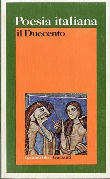 4. ed. XXXIII, 380 p. ; 18 x 11 cm. I grandi libri Garzanti, 206. Giacomo da Lentini, Guido delle Colonne, Pier della Vigna, Guittone d'Arezzo, Chiaro Davanzati, Brunetto Latini, Cecco Angiolieri, Francesco d'Assisi, Iacopone da Todi, Guido Guinizzelli, Cino da Pistoia: questi alcuni degli autori di cui il volume raccoglie le opere poetiche. Introduzione, scelta dei testi, note e commenti di Piero Cudini. Brossura editoriale, coperta illustrata a colori in cartoncino flessibile plastificato, titolo impresso al piatto e al dorso. Qualche segno del tempo, per il resto libro integro. Codice libreria 7177.