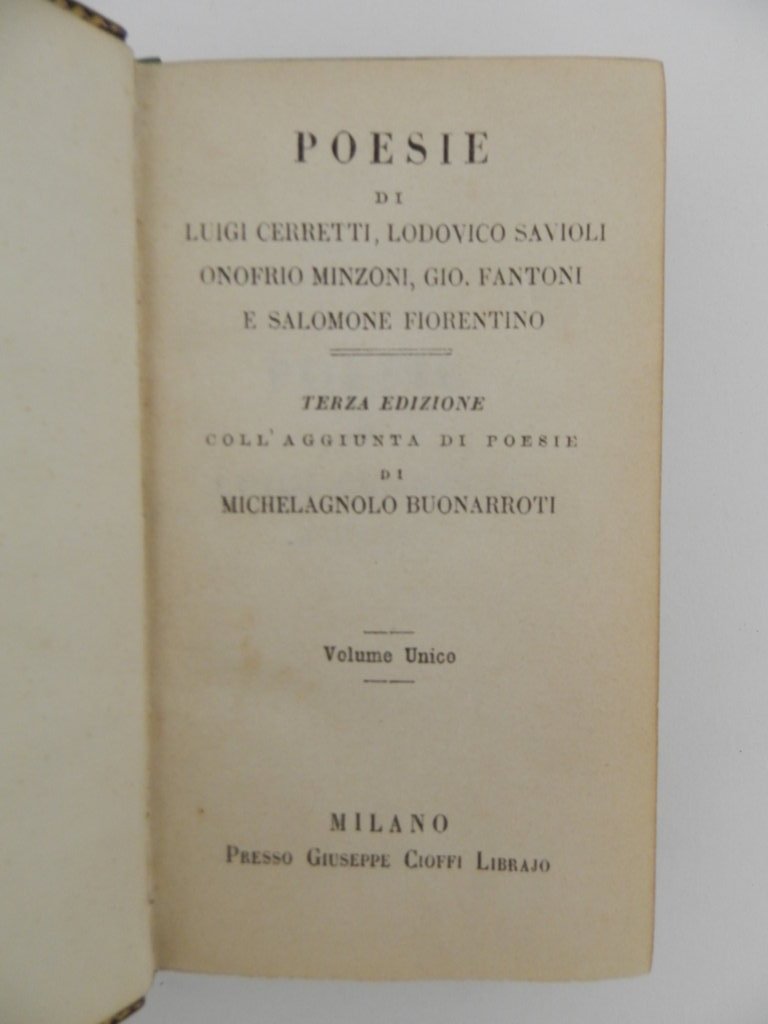 Poesie di Luigi Cerretti, Lodovico Savioli, Onofrio Minzoni, Gio. Fantoni e Salomone fiorentino. Terza edizione coll'aggiunta di poesie di Michelagnolo Buonarroti