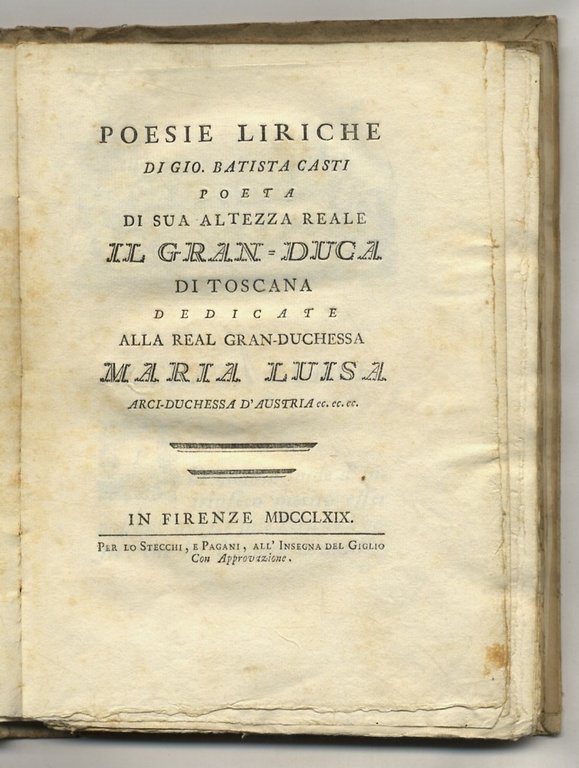 Poesie liriche di Gio. Batista Casti poeta di sua Altezza Reale il Gran Duca di Toscana [.].