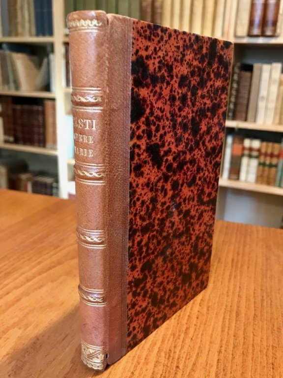 <span style="font-style: normal;">In-8° (cm. 15,7), legatura coeva in mezza pelle con titolo e decorazioni in oro al dorso; pp. [4] 235 [3b] in carta azzurrina, in barbe e in ottimo stato. Si tratta del quinto volume della collezione Opere varie (dicitura tomo quinto anticamente depennata dal frontespizio). Rara tiratura su carta speciale. Contiene anche la </span><i>Relazione di un viaggio a Costantinopoli </i>in prosa. Grazioso tomo. (NF6)