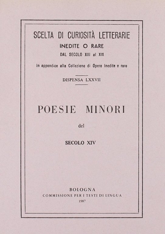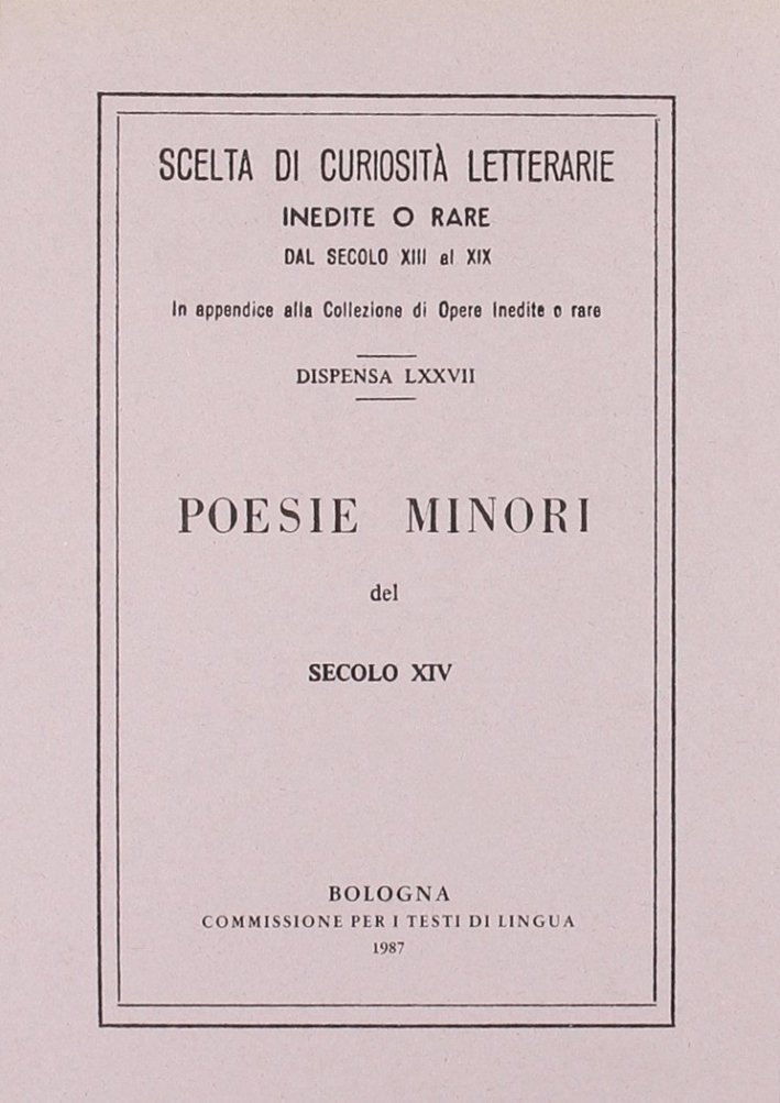 Sala Bolognese, 1969; br., pp. 148, cm 13x18. (Scelta di curiosità lett. dal sec. XIII).