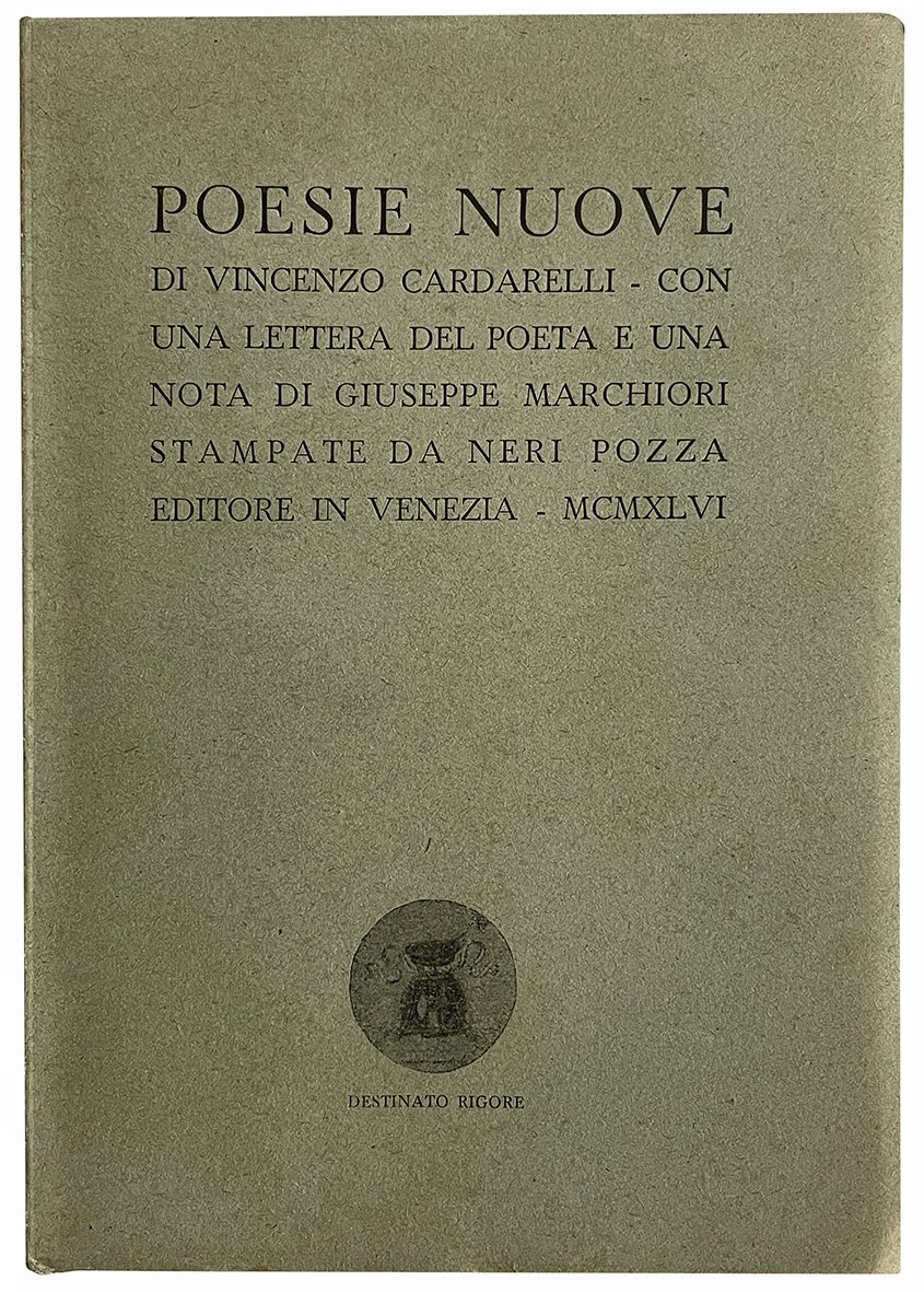 Poesie nuove di Vincenzo Cardarelli. Con una lettera del poeta e una nota di Giuseppe Marchiori.