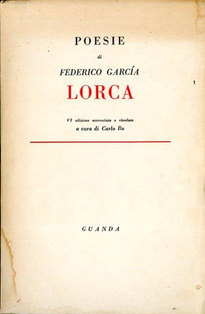 6. ed. acc. e riveduta. 437 p. ; 23 x 15 cm. Fenice. Edizione fuori serie, 2. Federico García Lorca è stato un poeta, drammaturgo e regista teatrale spagnolo, che raggiunse il riconoscimento internazionale come figura emblematica della generazione del '27, un gruppo principalmente di poeti che introdusse le avanguardie artistiche - come il simbolismo, il futurismo e il surrealismo - nella letteratura spagnola con risultati eccellenti, in quella che fu definita la Edad de Plata. In un primo tempo Lorca manifesta il suo talento come espressione orale seguendo lo stile della tradizione giullaresca. Il poeta infatti recita, legge, interpreta i suoi versi e le sue pièce teatrali davanti agli amici e agli studenti dell'università prima ancora che siano raccolte e stampate. Ma García Lorca, pur essendo un artista geniale ed esuberante, mantiene verso la sua attività creativa un atteggiamento severo chiedendo ad essa due condizioni essenziali: «amor y disciplina». Testo orig. con trad. a fronte. A cura di Carlo Bo. Brossura editoriale, coperta in cartoncino flessibile. Segni del tempo alla coperta, ingiallimento della carta, per il resto libro integro. Codice libreria 8824.