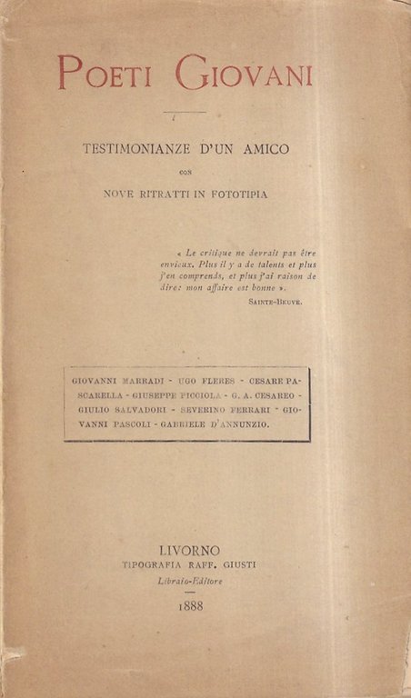 Poeti giovani. Testimonianze d'un amico con nove ritratti in fototipia