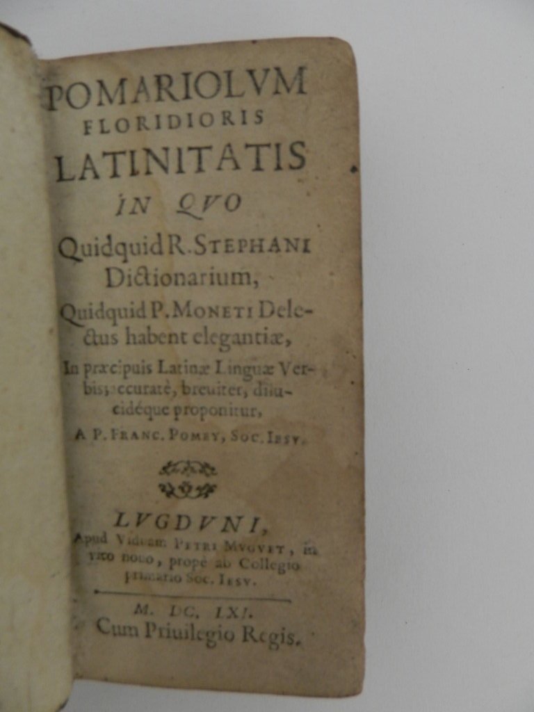 Pomariolum Floridioris Latinitatis in quo quidquid R. Stephani Dictionarium, quidquid P. Moneti delectus habent elegantiae, In praecipuis Latinae Linguae verbis; accurate, breviter, dilucideque proponitur, A. P. Franc. Pomey, Soc. Iesu