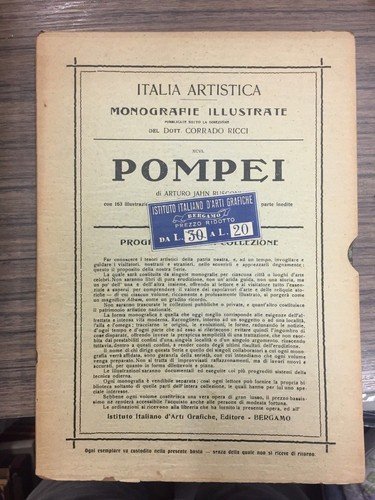 Bergamo. Istituto Italiano d'Arti Grafiche 1929, 8°, pp. 150, con 163 illustrazioni e 4 tavole f.t. Bross. Edit. Mancanze al dorso. Cofanetto con mancanze al margine inferiore. Segni del tempo. "Collezione di monografie illustrate".